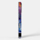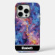 This beautiful phone cover features a heavily textured, abstract design with prominent impasto brushstrokes, creating a dimensional, organic pattern in soft shades of purple, blue, and pink, accented with white touches. The artistic, almost floral, aesthetic adds a unique flair to your device. A sleek black bar at the bottom offers personalization with a name like "Elizabeth"; if you don't want a name, you can remove it and any other elements you don't like from within the design tool, crafting a truly bespoke smartphone accessory.