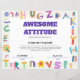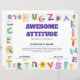 Introducing the Customizable Awesome Attitude Student Class Award, a perfect way to recognize students who embody positivity and enthusiasm! This eye-catching award features a fun design that celebrates a can-do spirit and a great attitude. Personalize it with the student's name, date, and a special message to make it truly memorable. Ideal for classrooms or extracurricular activities, this award inspires students to maintain their positive outlook while acknowledging their contributions to a vibrant learning environment!