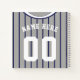 This design is a baseball / softball style jersey with blue pinstripe with white trim, the background colour can be changed, just click on CUSTOMIZE.