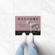 Cute doormat featuring an illustration of the Bedlington Terrier. Customizable background colour and texts. Perfect gift for the dog lover or Bedlington Terrier owner.