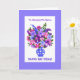 A Birthday Card for you to personalize, with a bouquet of pink, blue and purple flowers, from a handpainted paper collage by Judy Adamson. The recipient's name, front cover message and the inside message can all be customized and this card could be used for many occasions other than birthdays.
