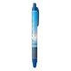A calm beach scene with rocks, waves, clouds and blue sky make a perfect backdrop for a personalized pen. The text can be customized or removed.