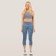Customizable Blue Denim Patchwork Replacable Logo Capri Leggings