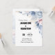 An elegant and fully customizable wedding invitation featuring soft blue and pink watercolor flowers with gold accents.
