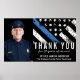 This design features a police force flag with black and white stripes, and a thin blue line stripe as well. This design is great for showing appreciation to an officer celebrating an anniversary or thanking a retiring law enforcement officer, sheriff, captain, or chief for their years of service. Customize even further with a photo of the retiring police officer.