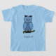 Customizable T-Shirt for all children who love owls and birds. Nice design with a blue owl in comic style. Personalize the name and make it unique.
