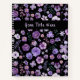Immerse yourself in an enchanted garden blooming across this notebook's cover, where hand-painted purple hydrangeas, orchids, and lavender dance with dusty pink peonies against a deep, velvety black backdrop. Every stroke whispers artistry: