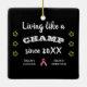 Customizable Breast Cancer Survivor yellow stars Ceramic Ornament