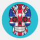 Customizable British Flag Sugar Skull with Roses Classic Round Sticker