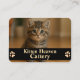 Make a lasting impression with this adorable and professional cattery business card featuring a sweet kitten photo, stylish black and gold accents, and paw print details. Fully customizable with your cattery’s name, contact info, website, and slogan. Perfect for breeders, pet services, or kitten adoption centres. Ideal for building trust and showcasing your brand’s charm and care.
