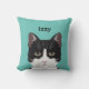 Customizable Cat Name - Black and White Tuxedo Cat Throw Pillow
