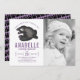 Customizable, Black and Purple, Cat Themed Photo Birthday Invitation.