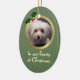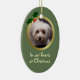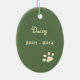 Add Your Dog's Photo to this Xmas Keepsake Celebrate a much-loved, much missed pet at Christmas with gold and green. Create a loving memory ornament by adding your dog's picture to the front of this canine Christmas keepsake, and add his or her name and dates to the reverse. Living pets can also be featured on this pet Xmas ornament -- simply delete the content in the dates box. Features a gold look frame with holly decoration for your dog's photo, and a pawprint on the reverse.