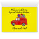 Hand drawn retro car with gifts. Name and background colour can be changed