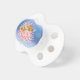 Original fine art design of little clownfish in their anemone by artist Carolyn McFann of Two Purring Cats on a customizable baby pacifier for little fish fans.