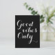 Three lines of handwriting-style text on a customizable background. Default text reads "Good vibes Only".