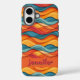 This customizable iPhone 16 case is great for colourful souls. It offers a wave pattern dominated by warm colours and few blue shades. Just change the text with your friend's name and create the perfect gift for your friend.