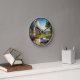 • This customizable clock features a serene countryside scene with a charming cottage, lush gardens, and a fluffy Ragdoll cat resting peacefully.