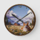 Customizable Cute Corgi Scenic Background Round Clock