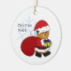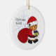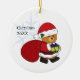 Cute, customizable Christmas ornament featuring this adorable Santa Teddy Bear. He's all ready in his red coat, hat, boots, and is carrying his big bag of gifts! Customize the text as you like, or erase it. Side two shows a decorated tree with gifts and more customizable text.