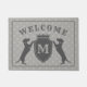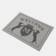 Cute doormat featuring the Dachshund silhouettes. Customizable background colour and texts. Perfect gift for the dog lover or Dachshund owner.