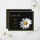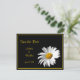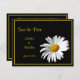 The text on this shasta daisy wedding save the date card is fully customizable. To change the wording, use the personalize options. To change font, font colour, or the background colour, you can use the customize option. The colours for this response card are black, white, and golden yellow. It would also look nice with a navy background or other dark blue background. The wording on this card could be changed to become a reception card, accomodation card, or direction card as well.
