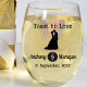 Celebrate love and create lasting memories with our stemless wine glass. This elegant glass features a romantic silhouette of a couple in an intimate dance, set against disco lights. Above the tender scene, the words "Toast to love" invite you to commemorate your unique occasion. Personalize this keepsake with your names and significant date to make it truly yours.