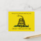 Don't Tread on Me! This eye catching customizable postcard features the historical 1775 Gadsden flag design. The flag has a coiled snake on a rich golden yellow background with the text "Don't Tread on Me" at the bottom. The reverse side of the postcard is default light grey. There is a spot to add your own text at the top if you wish. Just hit the Personalize button to edit or delete the text, or hit the Customize button to change the font, text colour, or reverse side colour. The flag was originally associated with the Continental Marines, the naval infantry force of the American Colonies. In modern times, the flag is sometimes associated with US patriotism, politics, disagreement of government overreach, or support for civil liberties. Perfect for a gift for lovers and preservers of freedom, liberty, and our rights. Great item for fans of historical flags, USA, symbols of the American Revolution, and patriotic American themed designs.