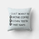 This humourous pillow displays the text, "I just want to drink coffee, clean teeth, and take naps." This is a great item for coffee-loving dental hygienists. The text is fully customizable, so feel free to replace the text with your own words of choice.