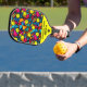 Bright yellow pickleballs add a lively and dynamic element to the pattern, capturing the essence of the sport. Positioned with purpose, they suggest movement and action, conveying the spirited nature of pickleball.