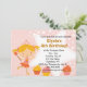 Fun fairy princess birthday party invitation with a little girl dressed in pink and orange and three colourful cupcakes with sprinkles. Completely customizable.
