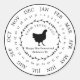 This adorable egg carton laid date sticker will help your keep track of your eggs and show customers to see just how fresh your farm eggs really are! It features a hen silhouette in the centre under the text "Farm Fresh Eggs". Personalize the sticker 2 lines of customizable text. You can include the name of your farm, homestead or business or whatever text you wish to add. The outer text includes 12 months and 31 days. Circle the month and day to indicate the freshness of your eggs. Black and white.