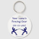 A fun keychain bag tag for your fencing equipment gear bag, backpacks and more. Enter Your name and/or text of your choice and include your phone number or email if you like. A great way to quickly recognize your bag at the club, salle, or tournaments. Other colours/styles also available. Makes a great, unique fencing gift!