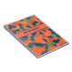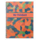 An eye-catching, customizable spiral Notebook, suitable for use as a journal, with an abstract pattern in vibrant colours - Flaming Orange, Midnight Blue and Deep Green, from a digital design by Judy Adamson