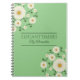 Elegant customizable notebook featuring white daisies on a green background, perfect for event planners.
