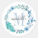 Customizable Floral Monogram Blue Spring Classic Round Sticker