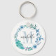 Your monogram alphabet letters circled by a beautiful wreath comprising blue flowers, leaves and foliage.