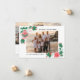 Embrace the spirit of the season with our charming horizontal layout design. The front of the card features a single large image, complemented by beautifully illustrated ornaments adorned with folksy designs. The top left and bottom right corners showcase intricately drawn pine needles, holly leaves, and berries, adding a touch of natural beauty. Customize the greeting and family name text to make it truly personal and heartfelt. On the back, a multi-image layout allows you to showcase four additional cherished moments, accompanied by customizable text for names or a heartfelt message. Folk type illustrated flowers gracefully line the bottom, enhancing the card's whimsical charm. Create lasting memories and share the joy of the season with our customizable Christmas photo card, designed to capture the warmth and beauty of the holidays.