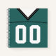 8.5" x 8.5" Spiral Notebook with laminated covers, and a choice of paper style, including sketchbook, ruled, half ruled, graph. The front and back of the notebooks have customizable jersey style designs, allowing you to add your own choice name and number to the back, and number on the front, use the boxes to the right of the image to change the text.
