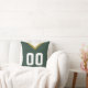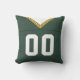 Easy to edit football or lacrosse custom jersey design throw pillow. The colours of this design is green with gold and white collar trim the 'skin' colour can be changed, just click 'CUSTOMIZE' to choose a different colour. Just use the boxes to the right of the image to insert your own choice of name and number on the back and number on the front.