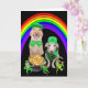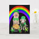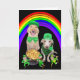 On this card with two cute dogs dressed very Irish, you can change the background colour on the front. You can customize the text, and change the font, font size and colour. The leprechauns were public domain clip art and so was the rainbow( They could be deleted if you prefer.)
