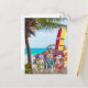 Funny, customizable postcard. It gives new meaning to "dogs on the beach". You can add text. The beach and the woodie were separate pictures from publicdomainpictures.