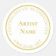 Gold circle design customizable adhesive Certificate of Authenticity sticker for artists and makers.