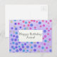 Cheerful purple Happy Birthday card with pastel multicolor dots. Text is customizable. Designed with a smile by iolantesdesigns :-)!