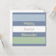 Horizontal pastel light blue, light green and dusty blue striped pattern and customizable text: Happy Easter. Click edit to change the text and name to your liking,