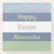 Horizontal pastel light blue, light green and dusty blue striped pattern and customizable text: Happy Easter. Click edit to change the text and name to your liking,
