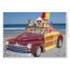 Two yellow Labs and a cattle dog in Hawaiian attire in a Woodie. Inside it says Happy Birthday in Hawaiian, ... but you can change that.