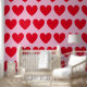 The design features red hearts on a pink background in a simple pattern. The red colour of the hearts is customizable should you wish to personalize it to match your preferred colours/ space palette.