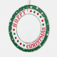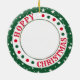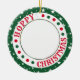 Bunny lovers, Hoppy Christmas pun customizable ceramic tree ornament in green. Add an image of your pet rabbit to this double sided photo Christmas tree decoration.