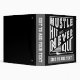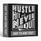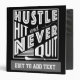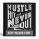 Big bold design for hurling and camogie fans and players! With the words: Hustle Hit And Never Quit and an image of a hurl / camán.